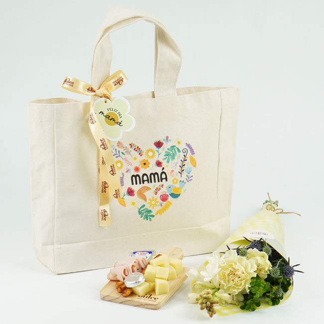 - Bolsita Dulce Sorpresa con diseño floral "Mamá". Medida 26x30cm